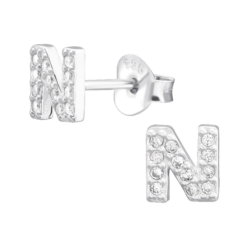 Children's Sterling Silver 'Letter N' Crystal Stud Earrings