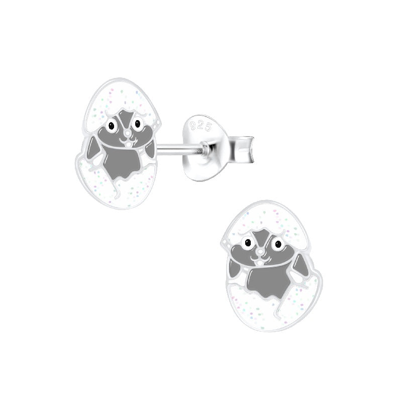Hop into Easter with these adorable Children's Sterling Silver 'Hatching Bunny Rabbit' Stud Earrings. They feature a super cute grey bunny in a white glitter egg.