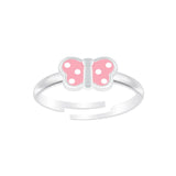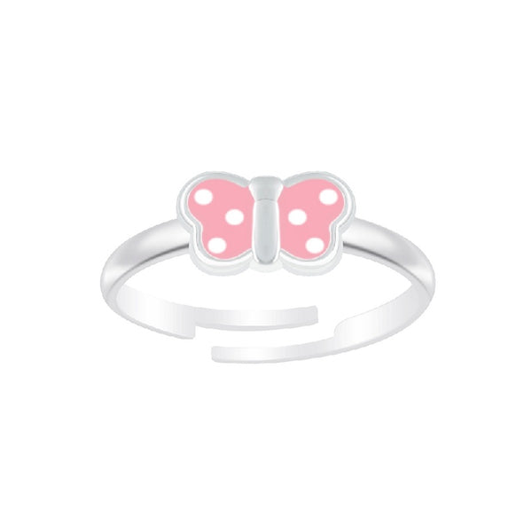 Children's Sterling Silver 'Pink Spotty Butterfly' Adjustable Ring