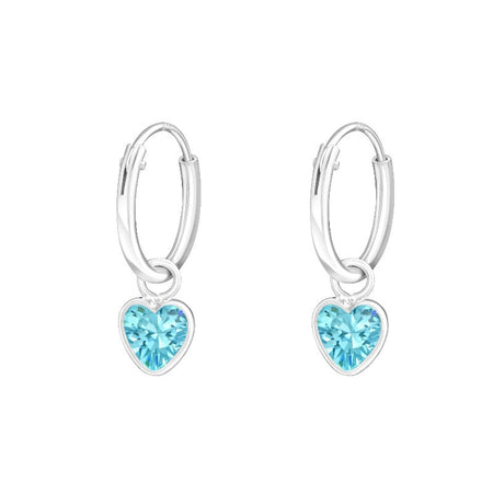Children's Sterling Silver 'Aqua Blue Crystal Heart' Hoop Earrings