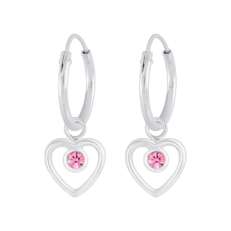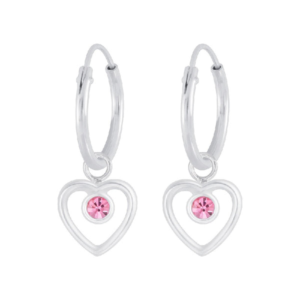 Children's Sterling Silver 'Heart with Pink Crystal' Hoop Earrings