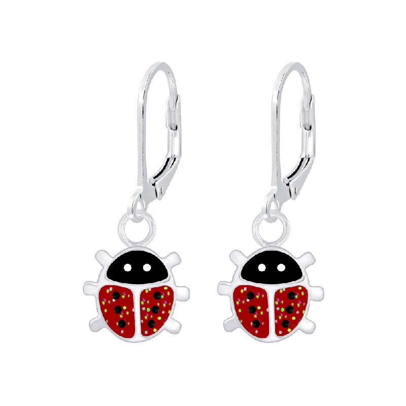 Children's Sterling Silver 'Ladybird/Ladybug' Lever Back Earrings Our stunning 'Sterling Silver Ladybird Lever Back Earrings' make a pretty addition to a little girl's jewellery collection. These gorgeous earrings would make a lovely gift for girls of all ages. They are very lightweight, super comfortable. The ladybird measures approximately 7mm x 6mm, making them ideal for little girls' ears. Material: 925 Sterling Silver Other: Red Glitter and Black Epoxy Lever Back Earrings have a hinged post and metal catch that cling together to keep the earring closed when in your ear. All our Earrings for Children are Hypoallergenic and FREE from Lead and Nickel Supplied with a gift box.