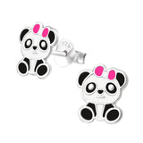 Children's Sterling Silver 'Panda with Pink Bow' Stud Earrings
