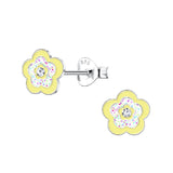 Children's Sterling Silver 'Pretty Yellow Flower' Stud Earrings Our adorable 'Sterling Silver Yellow Flower Stud Earrings' make a pretty addition to a little girl's jewellery collection. Each flower has a crystal centre for added sparkle. These lovely earrings would make a beautiful gift for girls of all ages. They are very lightweight, super comfortable and measure approximately 7mm x 7mm, making them ideal for little girls' ears. Material: 925 Sterling Silver Other: Yellow and White Glitter Epoxy Clear Diamante Crystal Butterfly back fastening All our Earrings for Children are Hypoallergenic Supplied in a gift box.