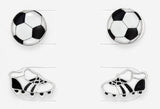 Children's Sterling Silver Set of 2 Pairs of Football Themed Stud Earrings
