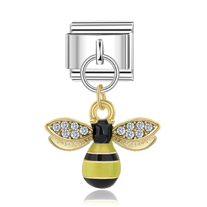 An individual shiny 9mm charm with Dangling Bee. This charm can be added to our Italian Charm Bracelets and is also compatible with other 9mm standard size Italian Charm Bracelets.